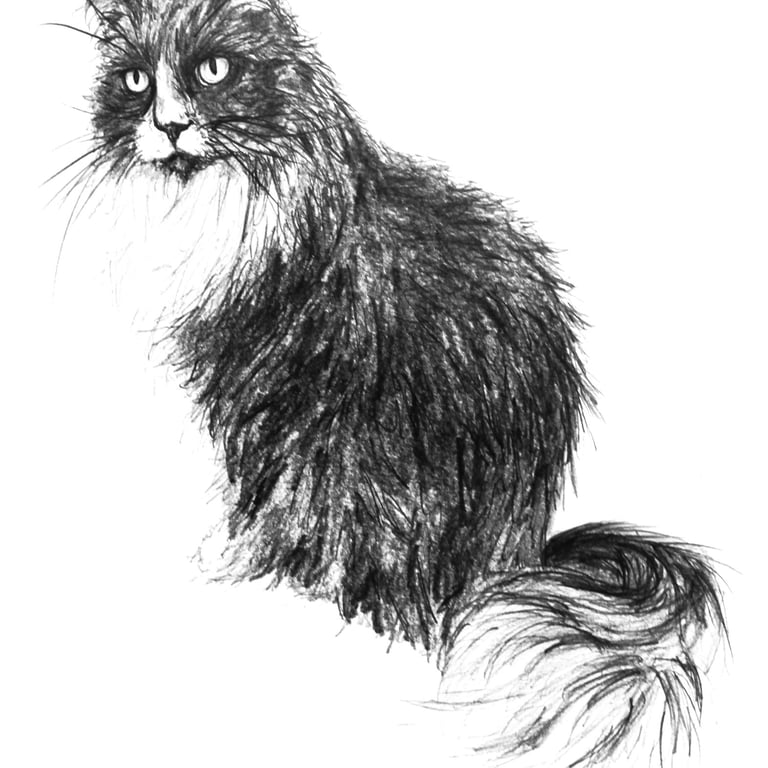 A pencil portrait is a great way to highlight all of your pet's details and wispy fur if you're looking for a greyscale piece of art.